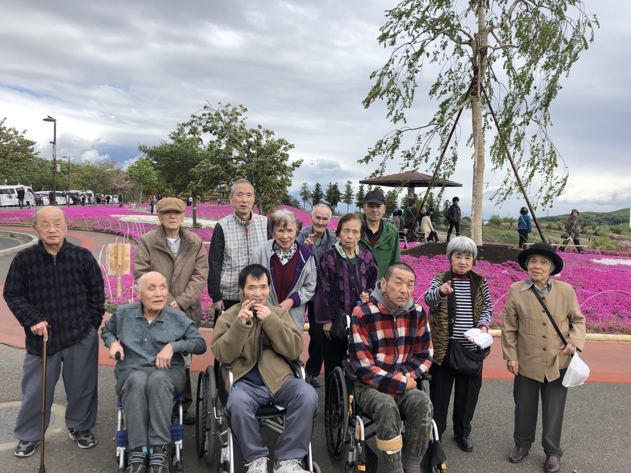 一面の芝桜やポピーなど色とりどりのお花が咲き誇っていました